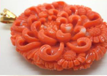 天然本珊瑚牡丹 薔薇 両面彫刻 ペンダント